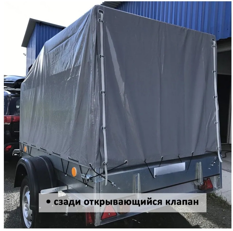 Тент для прицепа защитный. У тента есть открывающийся клапан сзади.