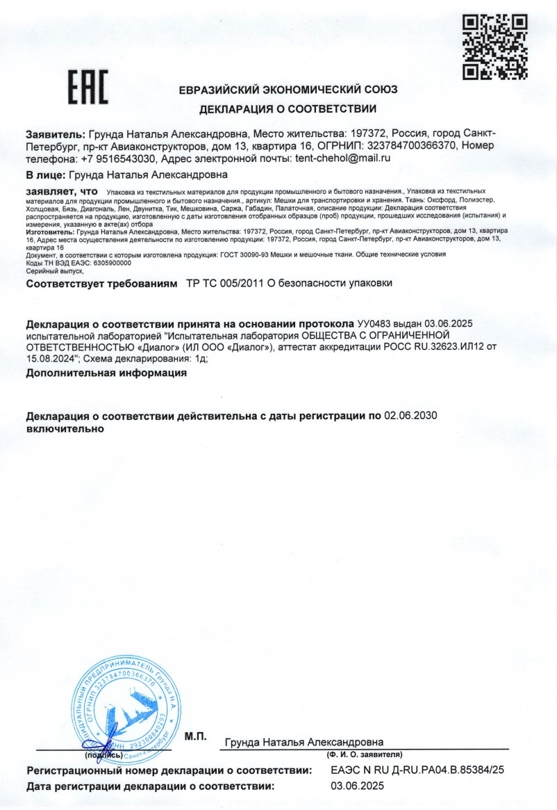 Для более подробной информации свяжитесь с нашим менеджером tent-chehol@mail.ru